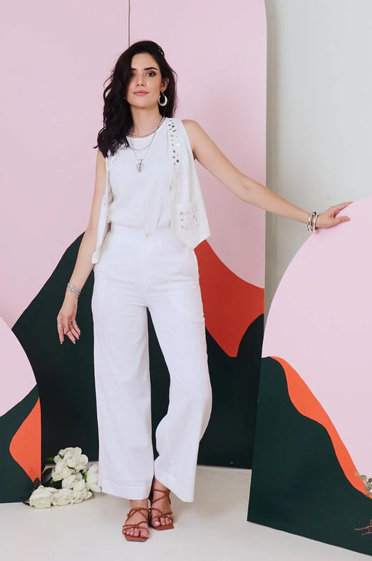 Aaina White Mirror Embroidered Waist Coat