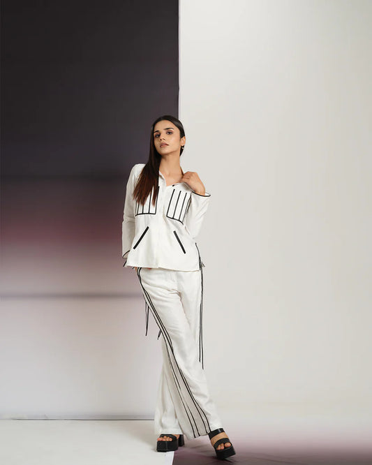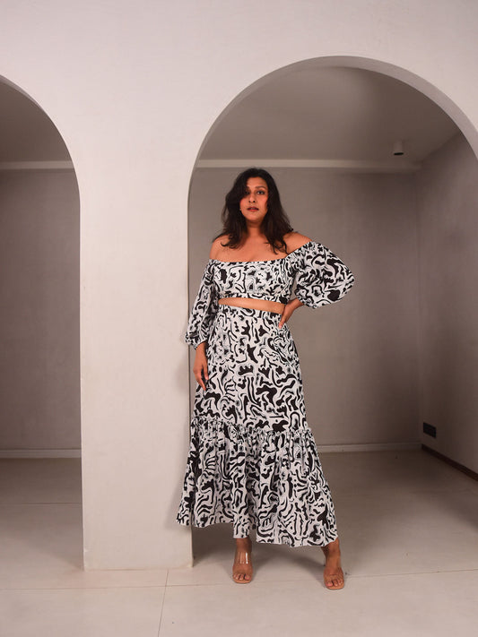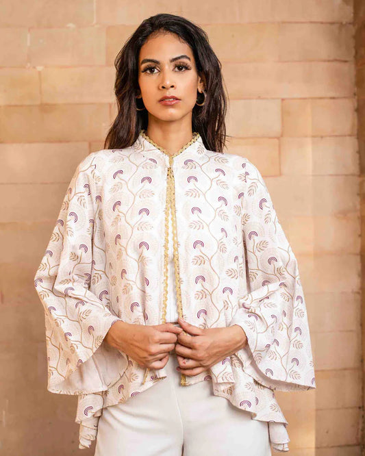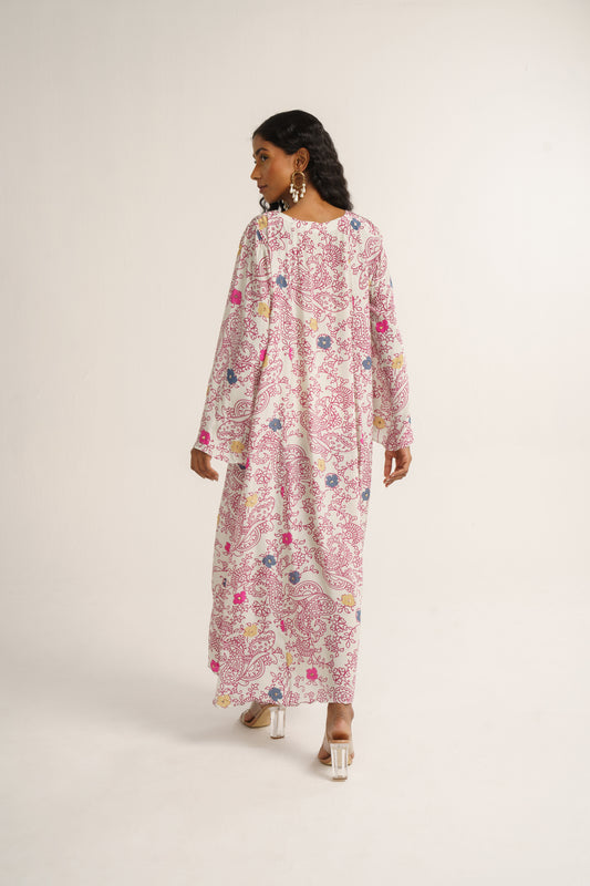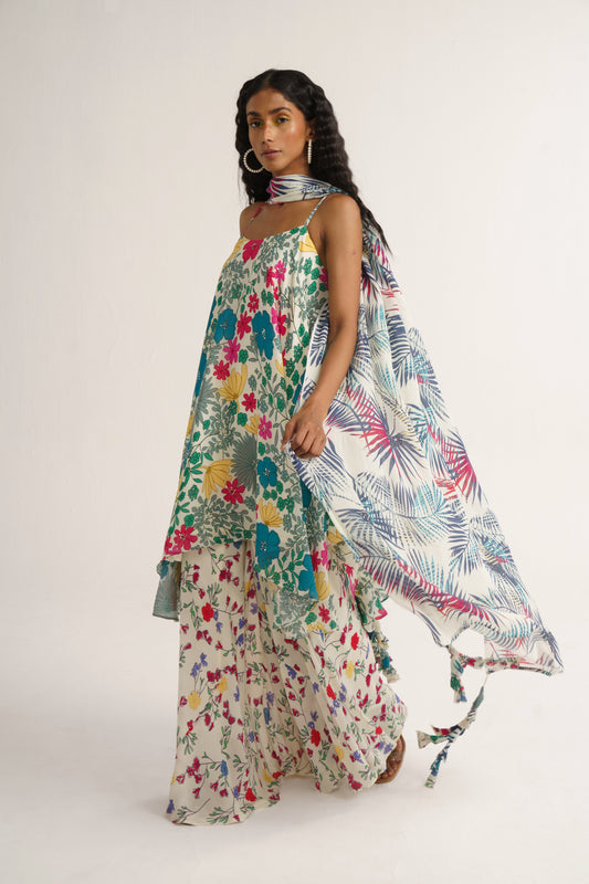 White Crepe Silk Print Floral Garden Square Neck Lily Kurta Sharara Set