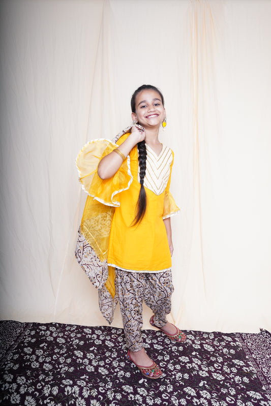 Mustard Printed Short Kurta Set