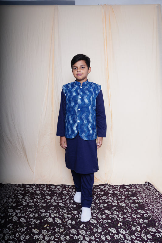 Blue Printed Nehru Jacket Set