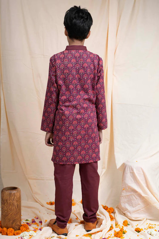 Maroon Printed Collar Kurta Set