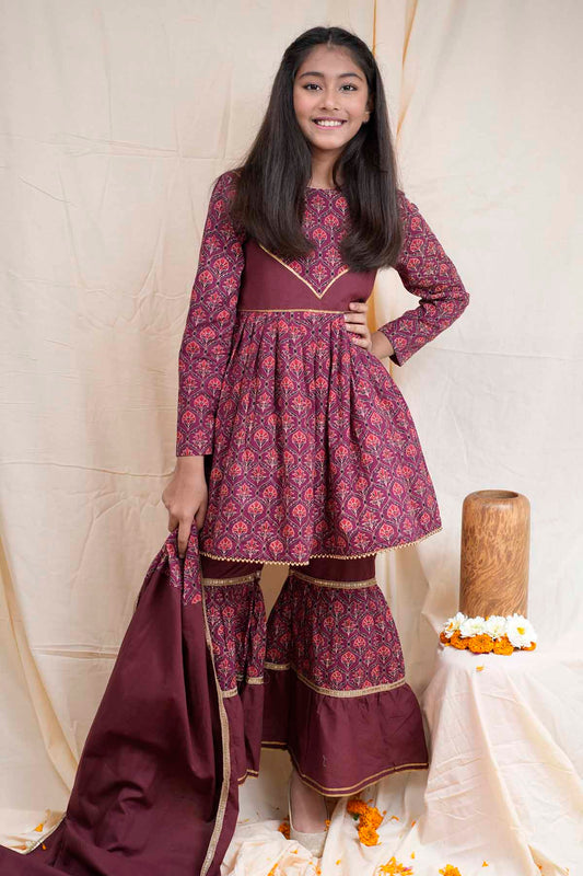 Maroon Printed Short Kurta Set