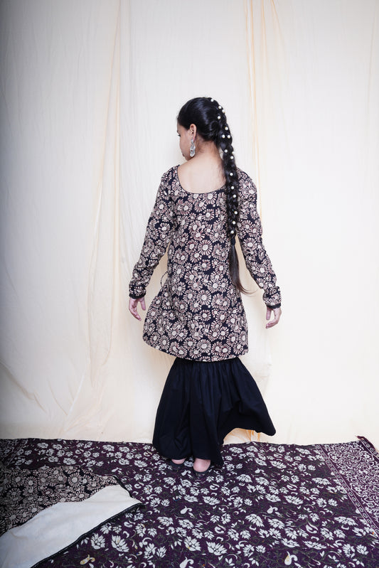 Black Printed Flared Kurta Set