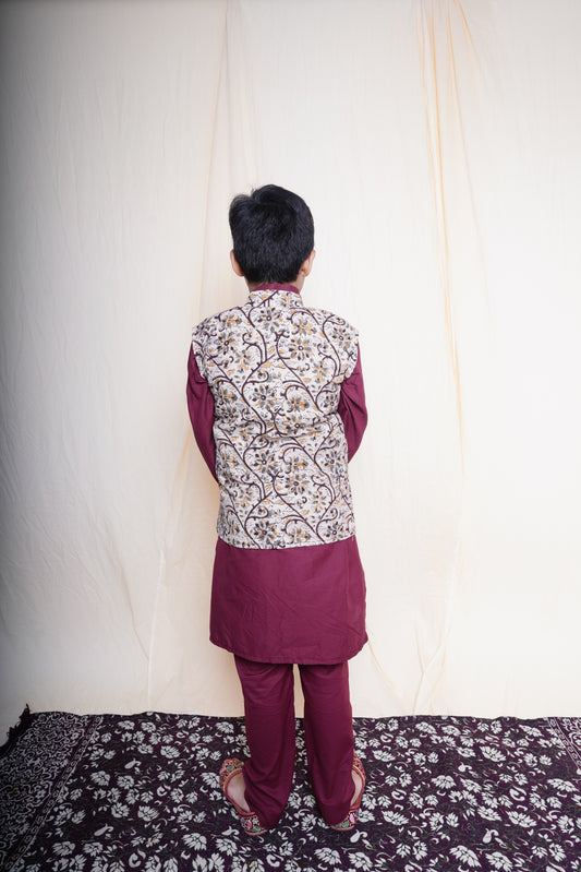 Maroon Printed Nehru Jacket Set