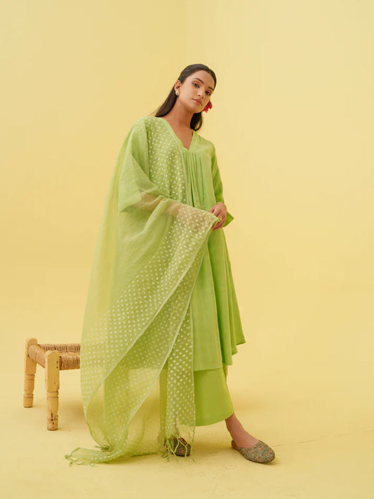 GREEN KALI KURTA SET WITH FIDA DUPATTA