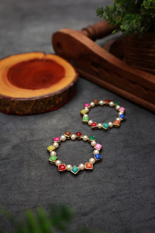 Square Kundan Beaded Hoops