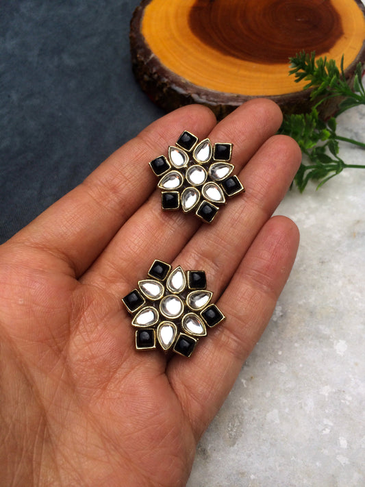 Black Stones and Kundan Small Round Studs
