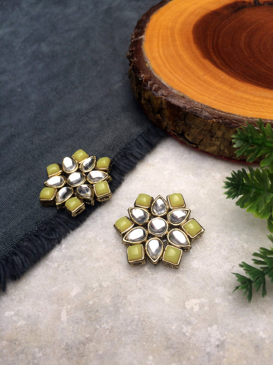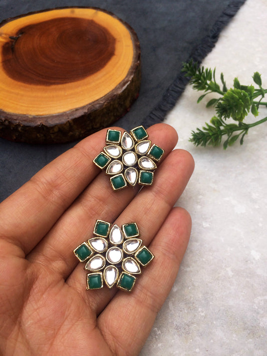 Green Stones and Kundan Small Round Studs