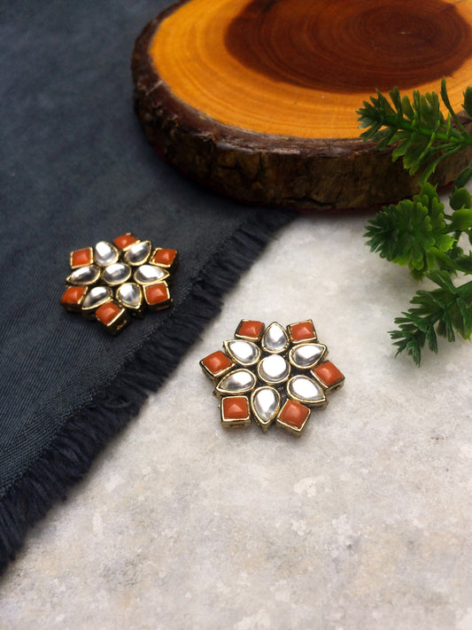 Orange Stones and Kundan Small Round Studs