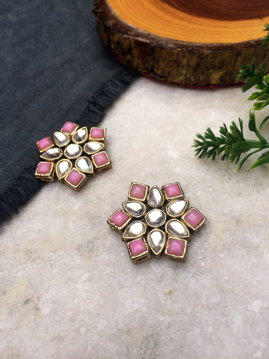 Pink Stones and Kundan Small Round Studs