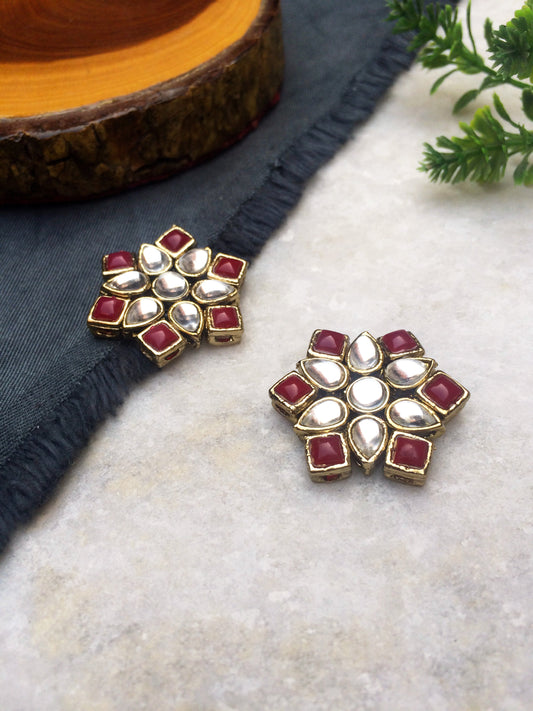 Red Stones and Kundan Small Round Studs