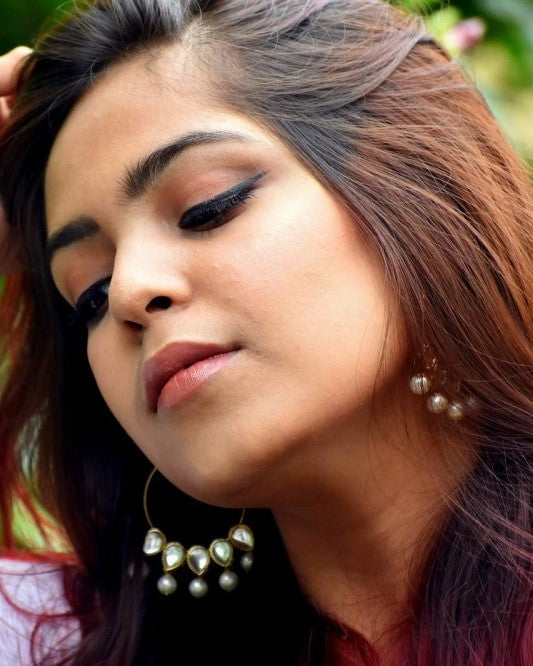 Pearl and Kundan Hoop Earrings