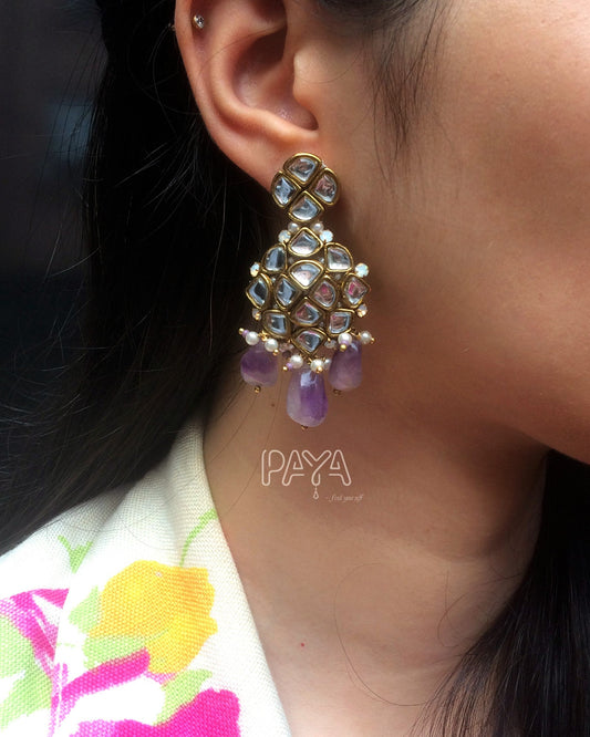 Natural Amethyst and Kundan Chandelier Earrings