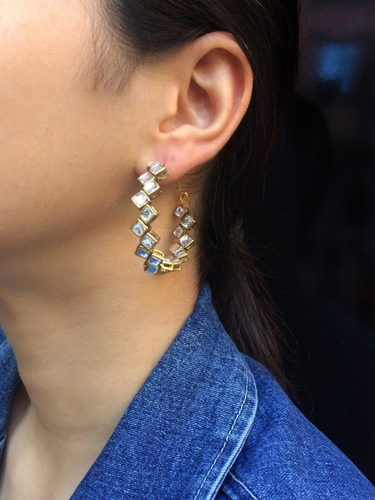 Kundan Square Hoop Earrings