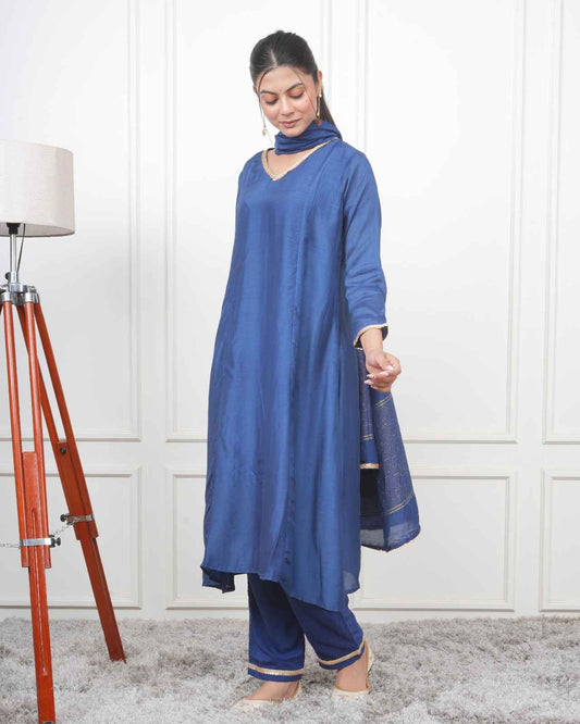 NAVY KALI KURTA SET WITH FIDA DUPATTA