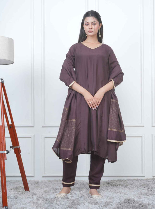 BROWN KALI KURTA SET WITH FIDA DUPATTA