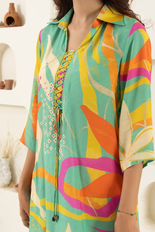 LILAC SATIN ASYMMETRIC TUNIC SET