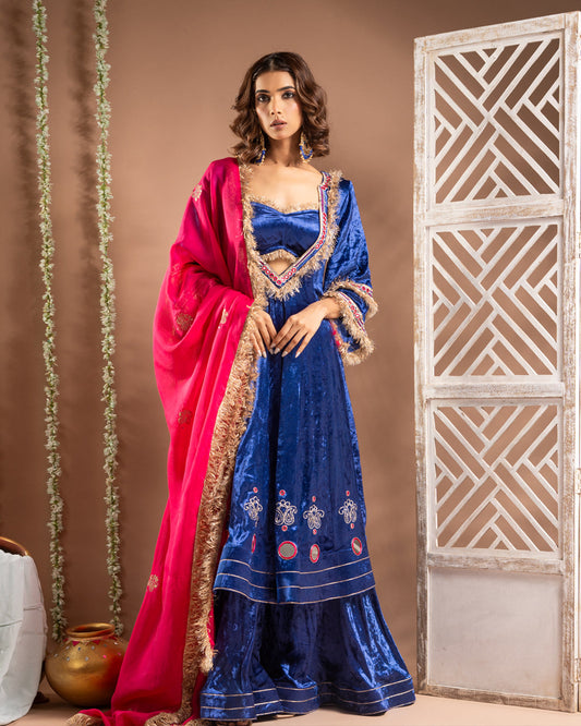 Royal Blue Velvet Anarkali Suit Set (Set of 4)