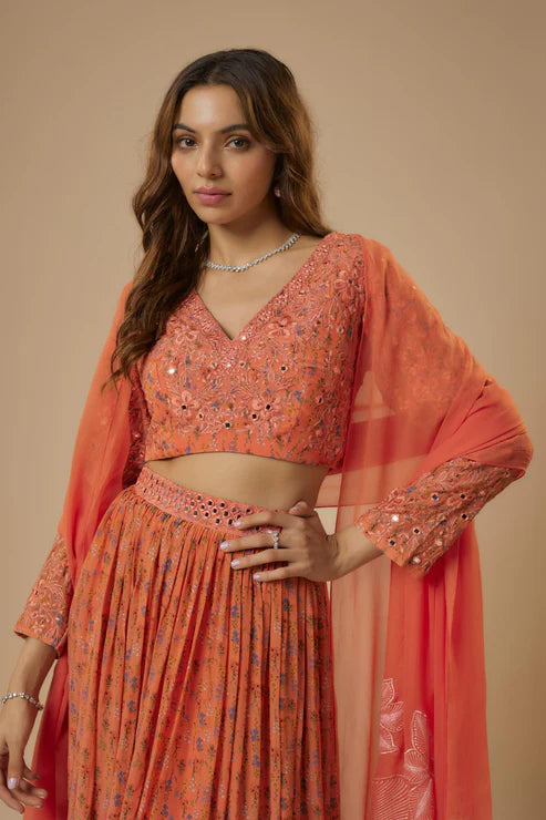 Printed Mirror Lehenga Set