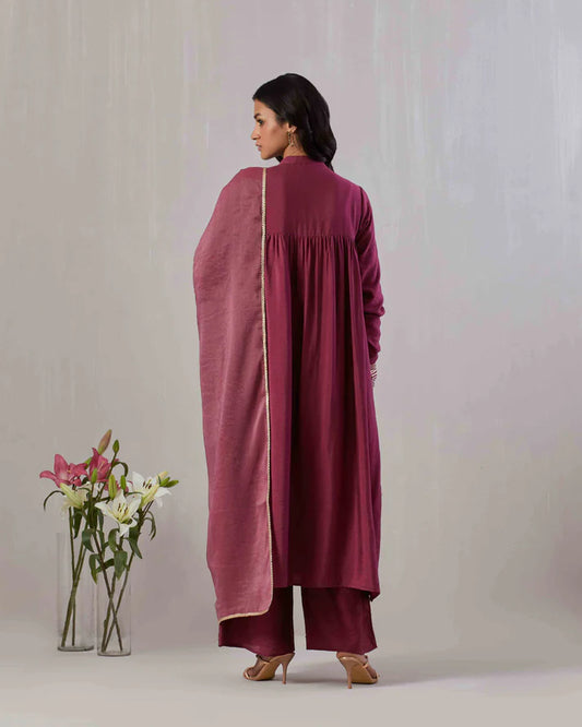 Wine Gota Embroidered Kurta Set