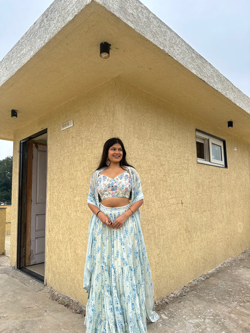 Blue Floral Lehenga Set