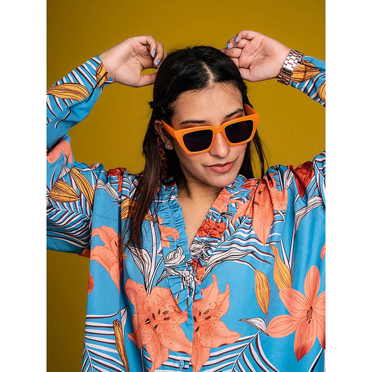 FUGA Painted Floret Ibiza Co-Ord Blue (Set of 2)