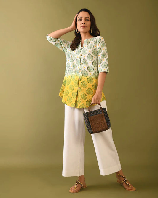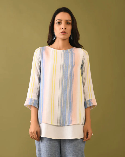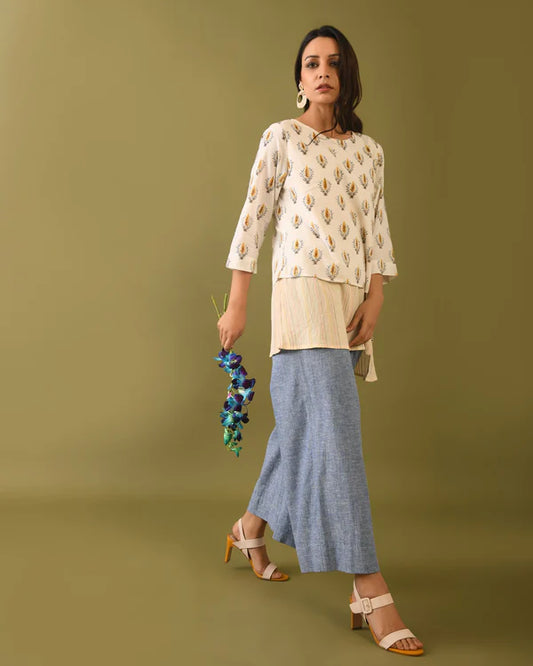 Viscose Cotton Linen Solid Top with Pleated Belt