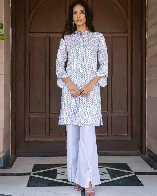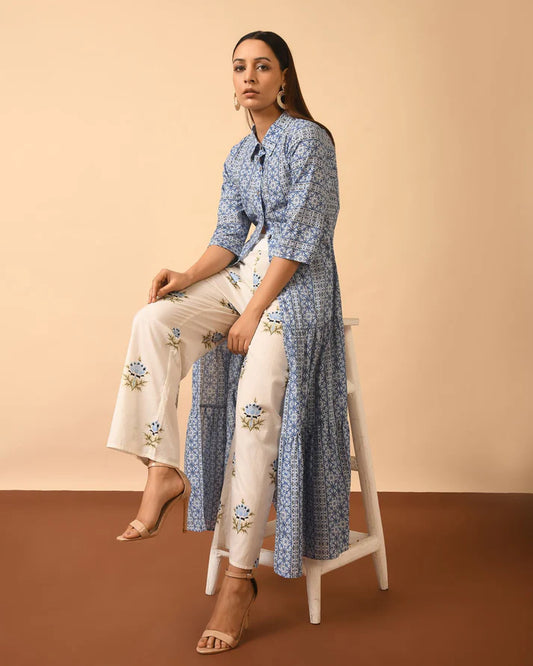 Collared Print Top and Block Print Pant