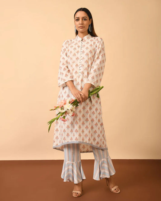 Cotton Print Kurta with Bell Bottom Pant