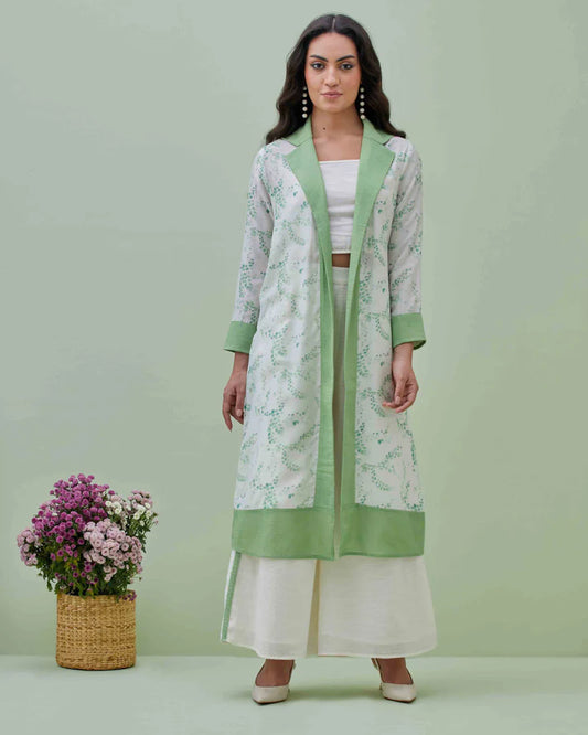 3 Piece Sea Cami & Dhoti Pant Set with Chanderi Printed Jacket