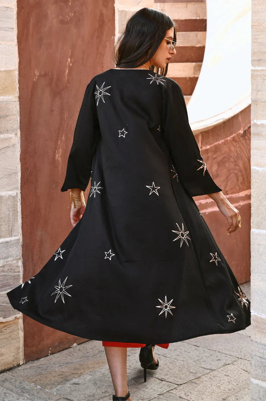 Kashvi Star Black Sequin Embroidered Cover-up