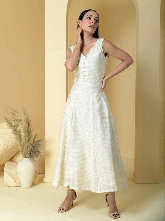Mogra- White Self check dress