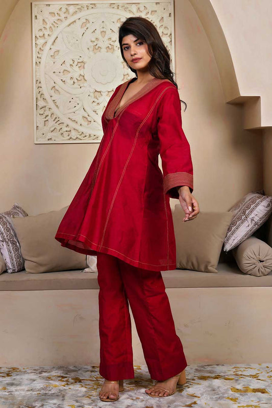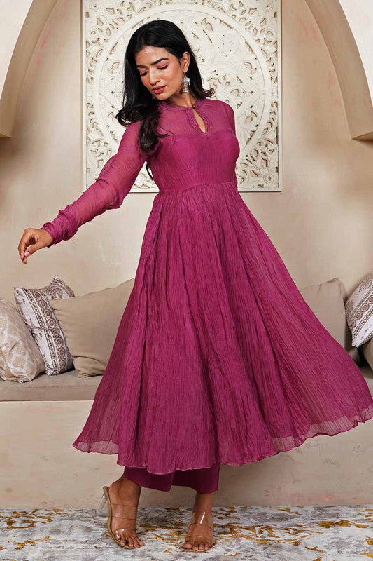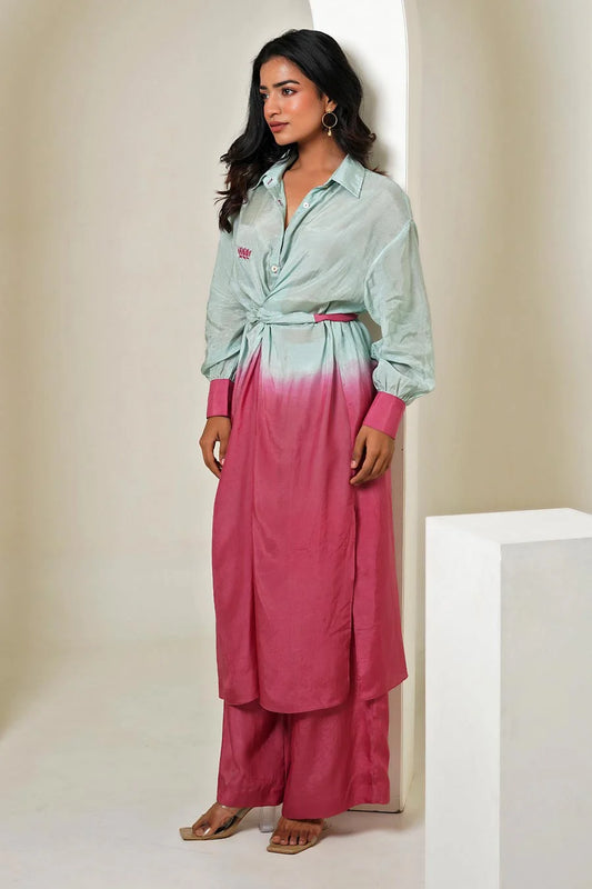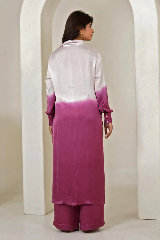 Blush-Magenta Ombre Shirt Kurta & Pant Set