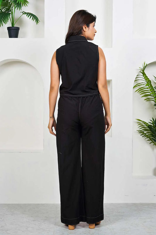 Black Boxy Crop Shirt & Pant Co-Ord Set