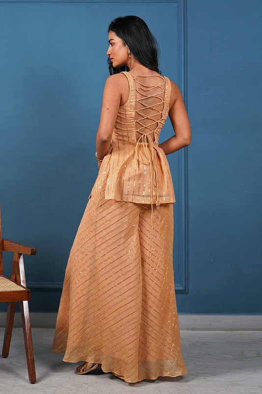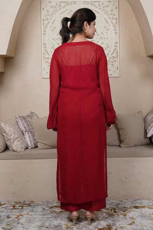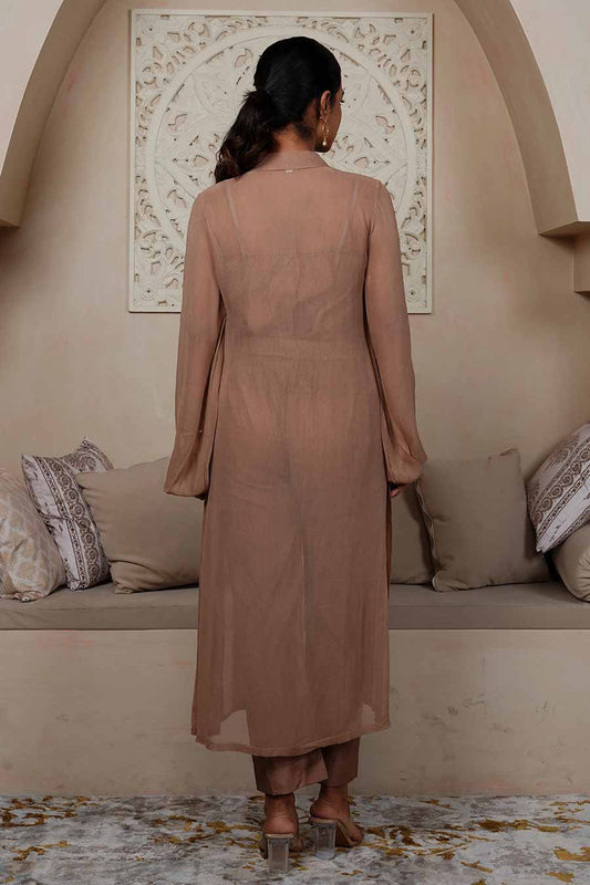 Rust Sepia Short Kurta & Wide-Leg Pant Set