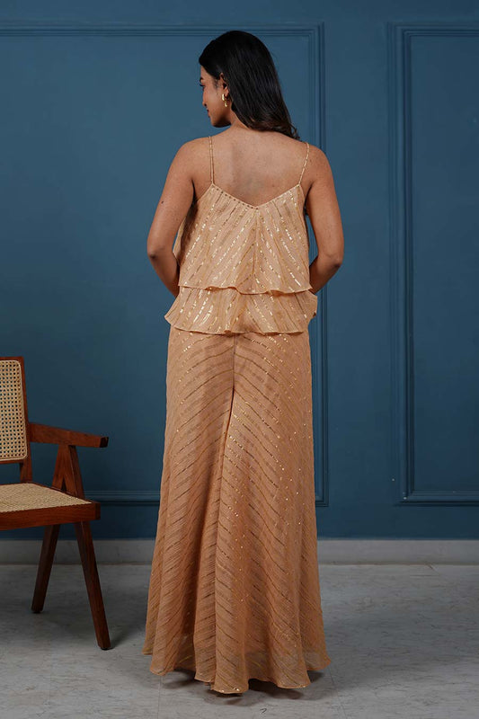 Rust Sepia Ruffle Top & Wide-Leg Pant Set
