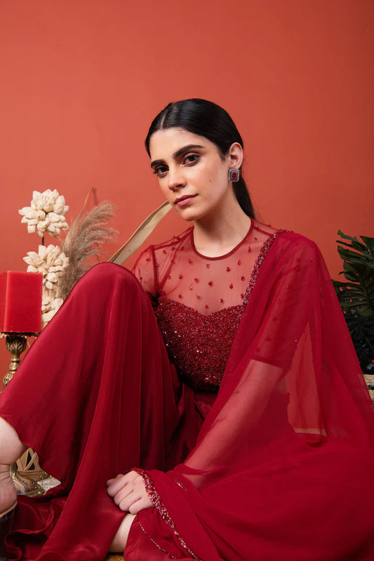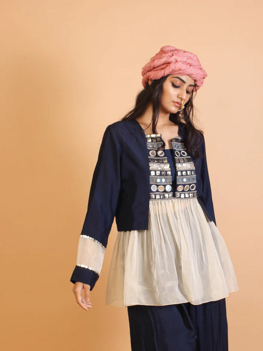 Hot Pink Cape Indowestern Set- (Set Of 4)