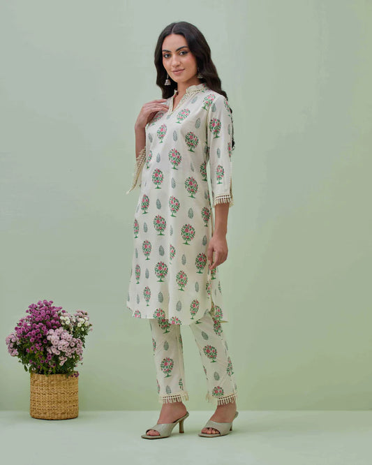 Tropical Printed Kurta Pant Set