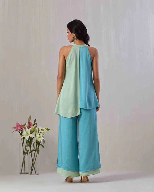 Two Toned Front Open Top & Pant set