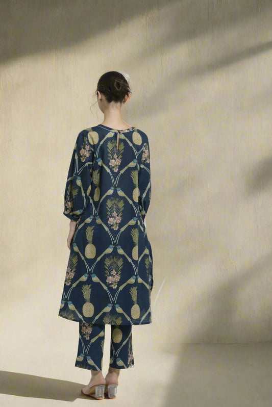 Sold outNAVY CUT WORK TUNIC AND BOTTOM SET