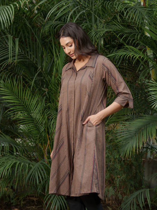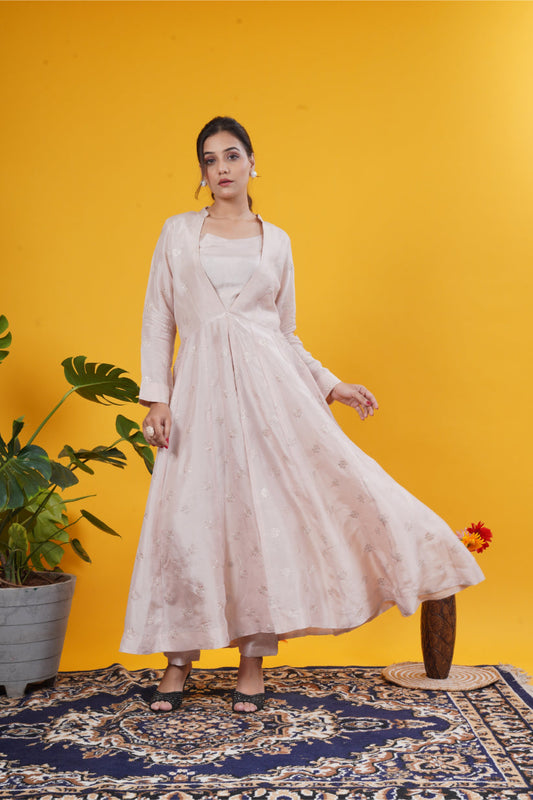 Light Brown & Peach Pink High-Slit Jacket Set