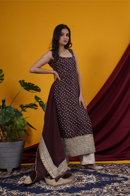 Brown Bandhani Graceful suit set