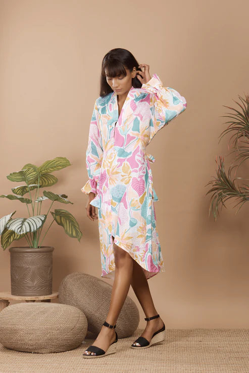 Hibiscus One Shoulder Tie-up Dress