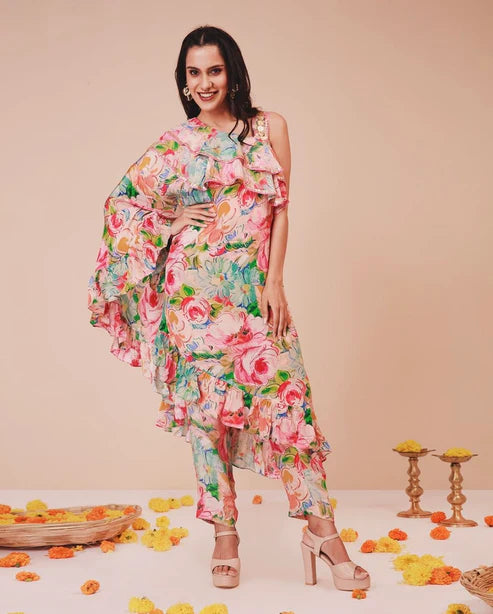 Bright Floral One Shoulder Dress