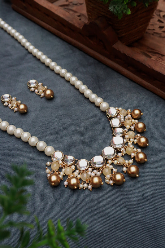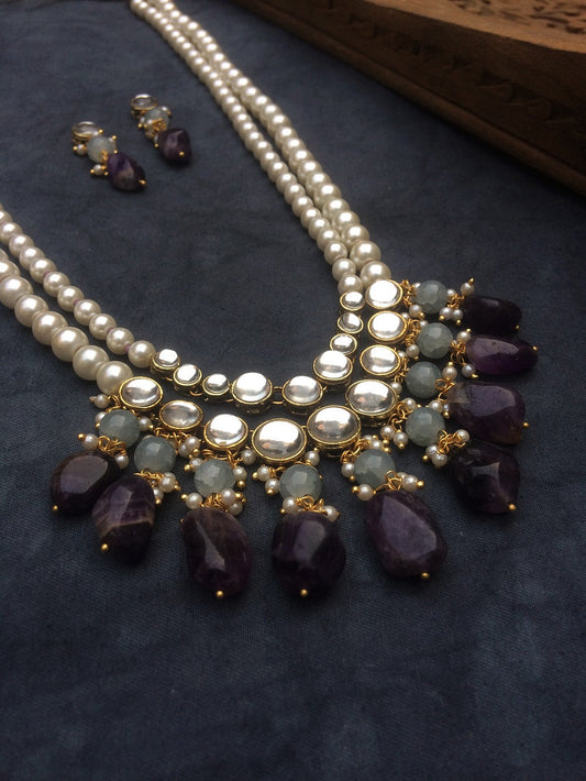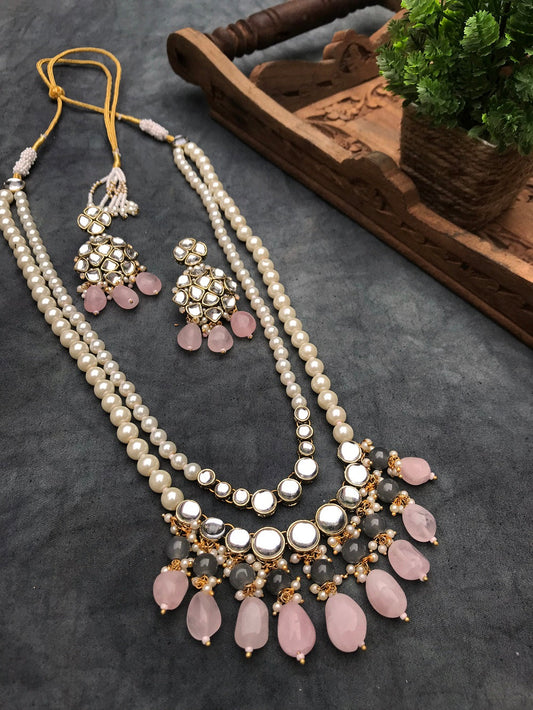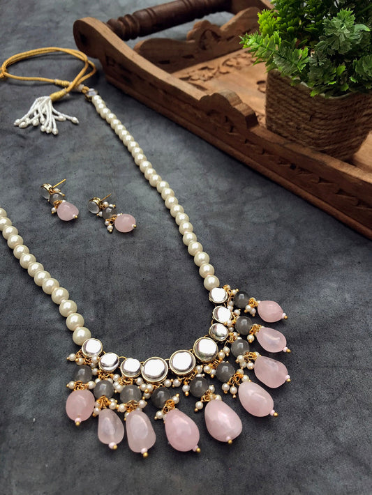 Rose Quartz Kundan and Pearl Choker Necklace Set