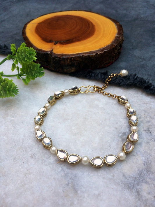 Drop Kundan and Pearl Bracelet