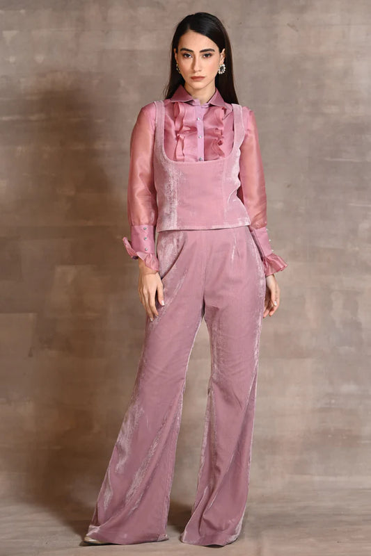 Dark Green Embroidered Shirt & Pant Set With Belt