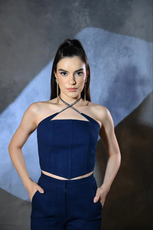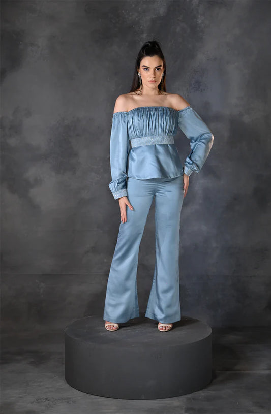 Black Golden Asymmetrical Drape Blazer Pant Set