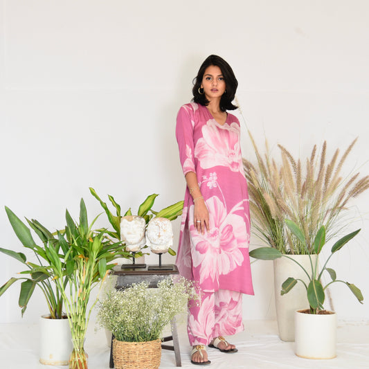Clara Set - Onion Pink Floral Printed Co-Ord Set