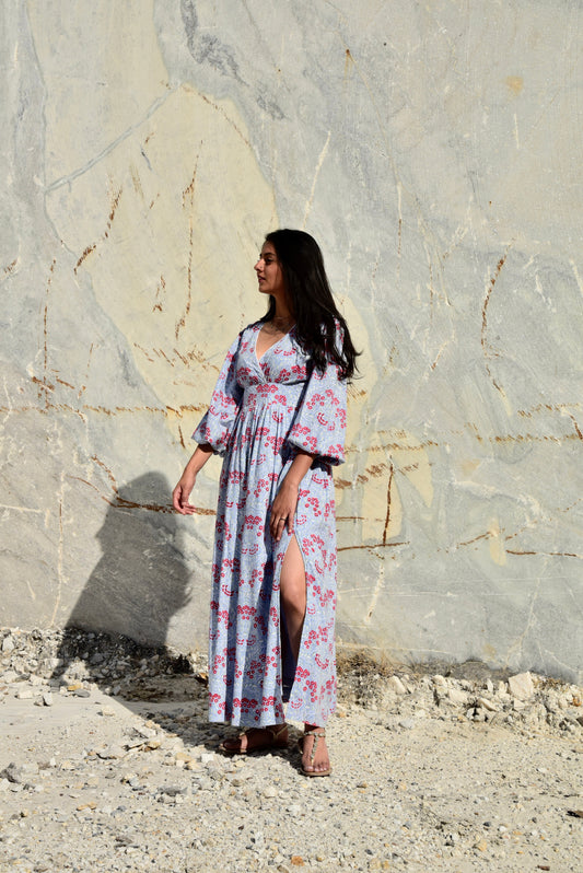 Kenosh Dress - Chic Fit and Flare Blue Floral Print Dress